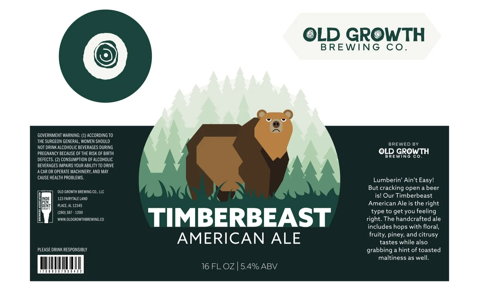 One (1) individual beer labels/packaging for 12oz. bottles for the flavor Timberbeast American Ale, The following package components to be produced are: